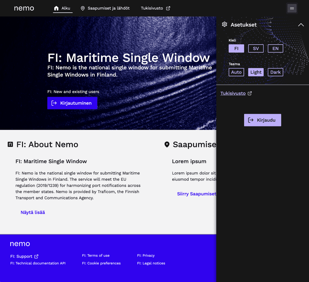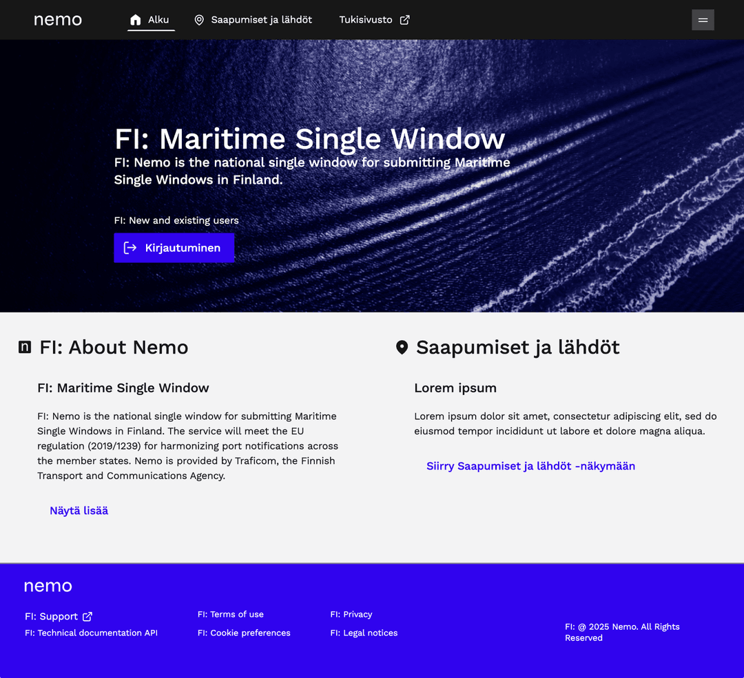 Kirjaudu Nemoon Suomi.fi-tunnistuspalvelun kautta. Palvelu mahdollistaa turvallisen kirjautumisen sähköisiin palveluihin ja on käytössä Nemossa käyttäjän henkilöllisyyden varmistamiseksi.