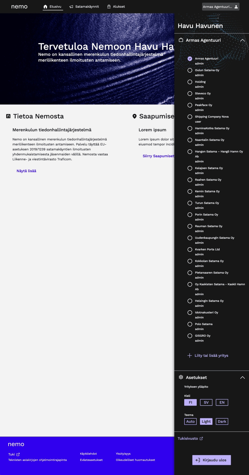 Voit liittyä yhden tai useamman organisaation käyttäjäksi Nemossa.
