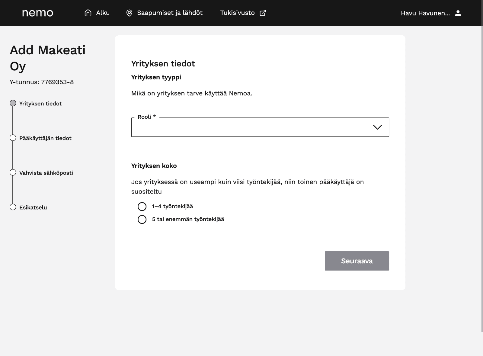 - Organisaation lisääminen Nemoon